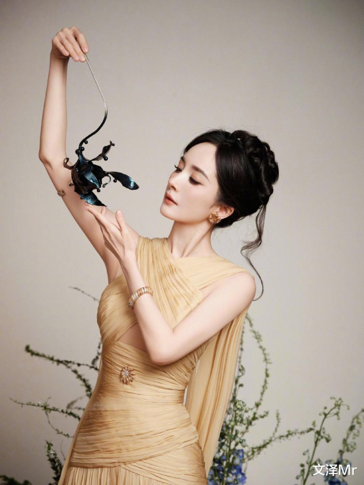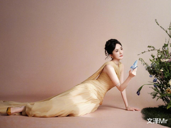 侧坐的杨幂手捏蓝色蝴蝶饰品,眼神望向远方,身后是色彩丰富的花束与绿植。这一画面如同定格的诗句,讲述着时尚与自然、瞬间与永恒的共生关系。从《仙剑奇侠传》中灵气逼人的雪见,到如今时尚与演艺事业双丰收的成熟女性,杨幂的时尚之路与她的人生经历紧密相连。这张图中的静谧美好,或许正是她如今心境的外化——历经繁华,归于本真,在时尚中寻找到内心的平和。